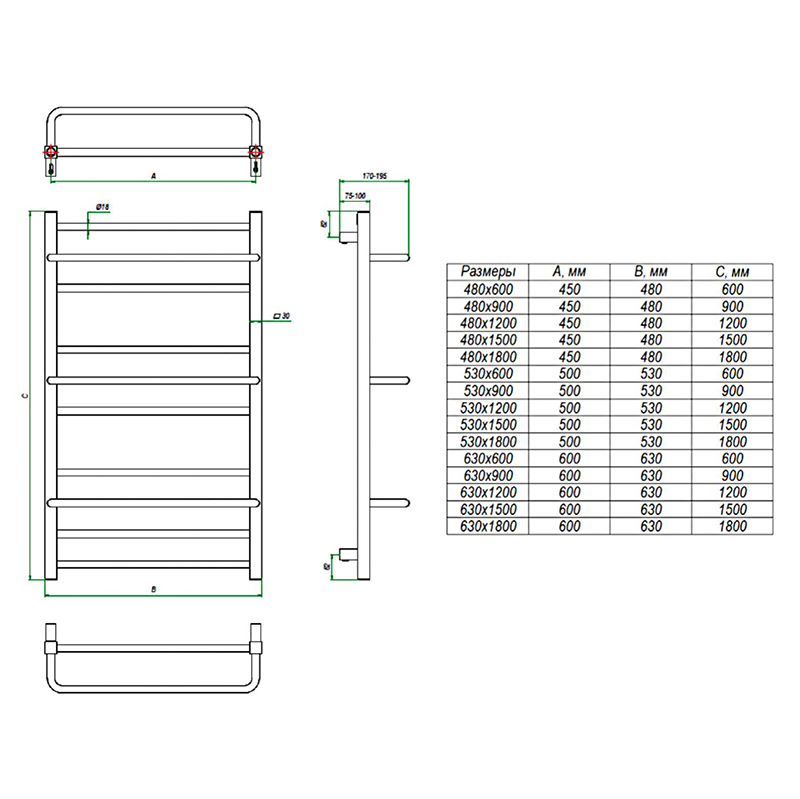 - Вид полотенцесушителя: Лесенка.