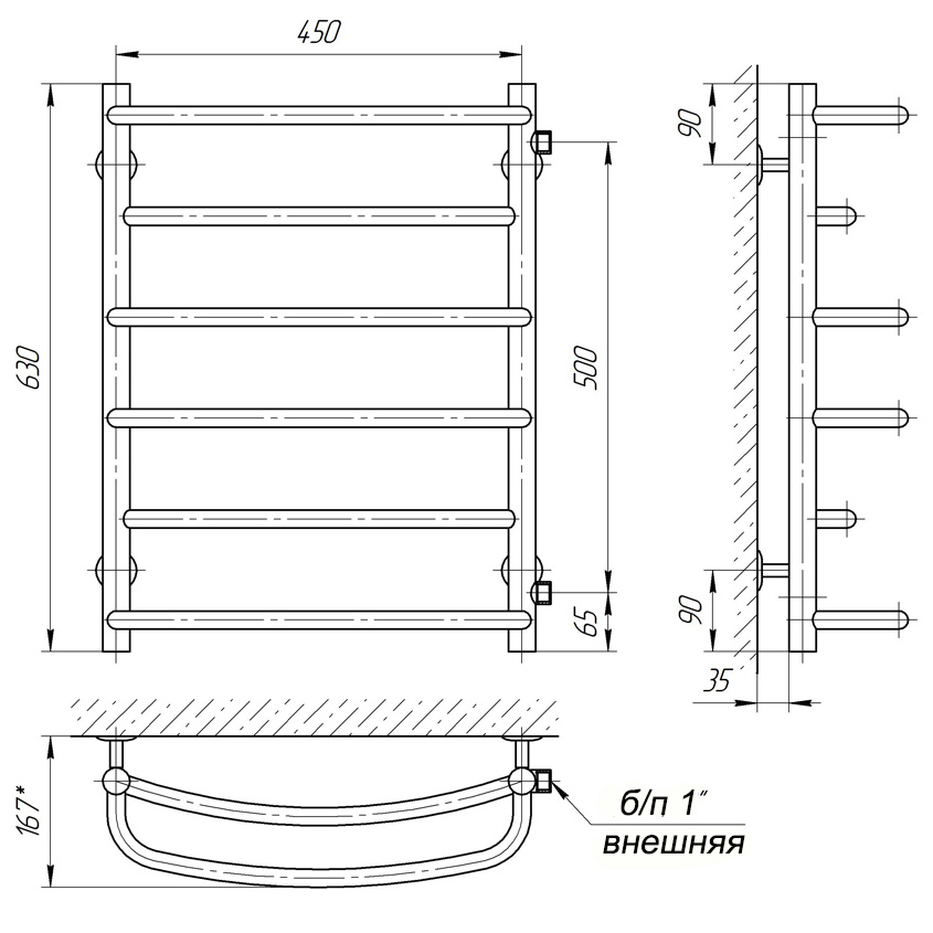 Группировка перекладин 6. Все элементы полотенцесушителя выполнены из нержавеющей стали.