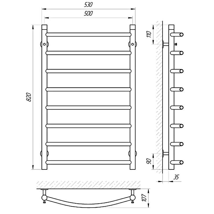 Группировка перекладин 8. Все элементы полотенцесушителя выполнены из нержавеющей стали.