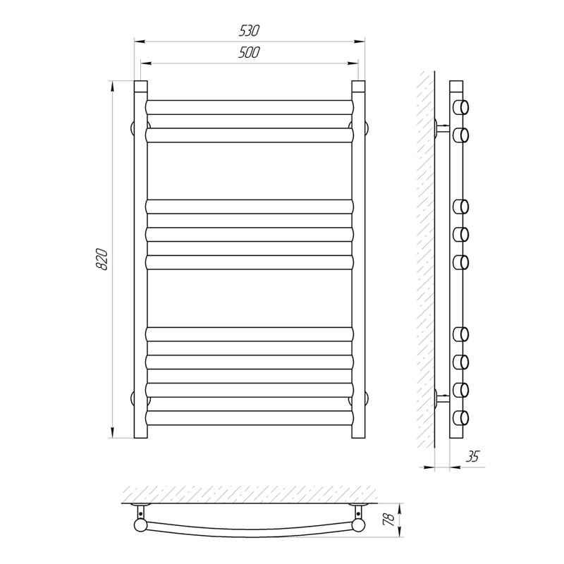 Группировка перекладин 2-3-4. Все элементы полотенцесушителя выполнены из нержавеющей стали.