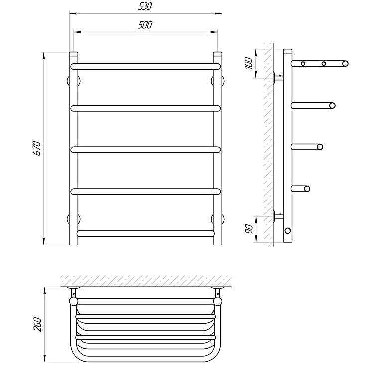 Группировка перекладин 5. Все элементы полотенцесушителя выполнены из нержавеющей стали.