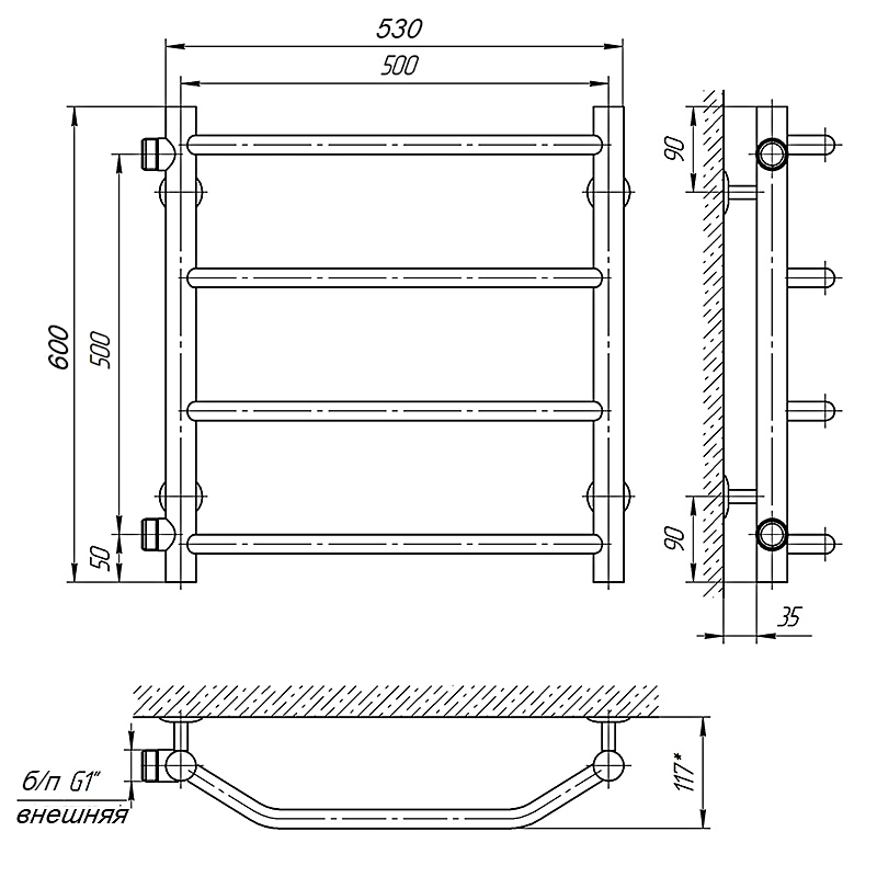 Группировка перекладин 4. Все элементы полотенцесушителя выполнены из нержавеющей стали.