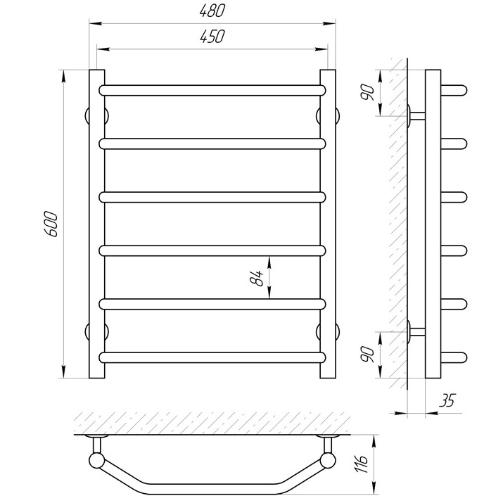Группировка перекладин 6 Все элементы полотенцесушителя выполнены из нержавеющей стали.