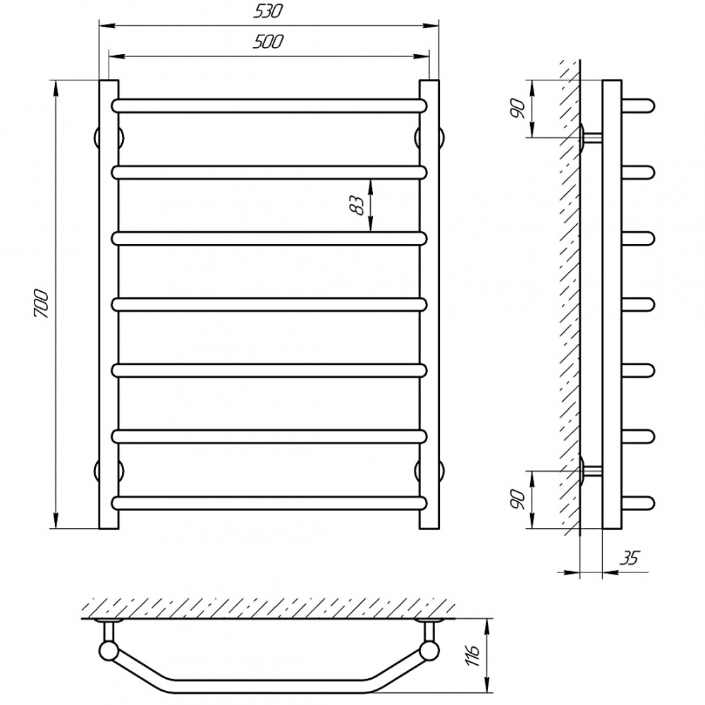 Группировка перекладин 7 Все элементы полотенцесушителя выполнены из нержавеющей стали.