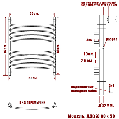 Водяной полотенцесушитель Ника Arc ЛД (г3) 80x50 см, цвет хром.