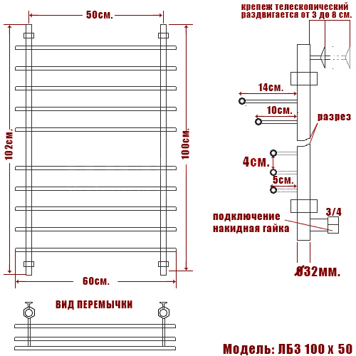 - Наружный диаметр основной трубы/перекладин: 32/18 мм.