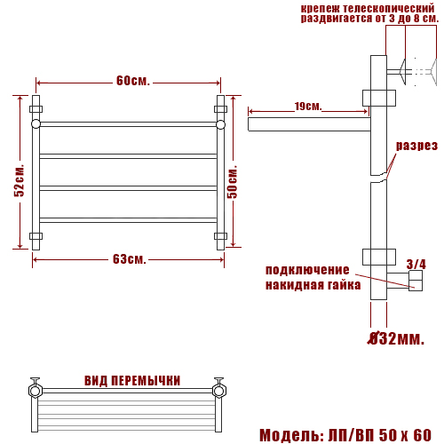 - Наружный диаметр основной трубы/перекладин: 32 / 18 мм.