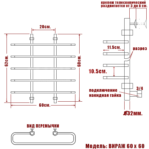 Используется для удобной просушки влажных вещей и полотенец, а также дополнительного обогрева помещения. Изготовлен из пищевой нержавеющей стали марки AISI 304 (Италия) с антикоррозийным покрытием, отличается стойкостью к высоким температурам, выдерживает значительные перепады давления.