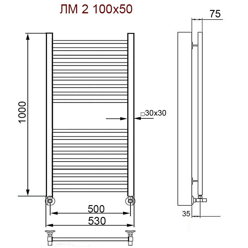 Водяной полотенцесушитель Modern ЛМ 2 100x50 Черный матовый с вентилями имеет стильный внешний вид, что позволит ему выигрышно выглядеть в любом помещении. Нестандартный цвет модели выделяет полотенцесушитель и делает его уникальным. Срок службы изделия более 20 лет благодаря прочному материалу, из которого изготовлена данная модель.