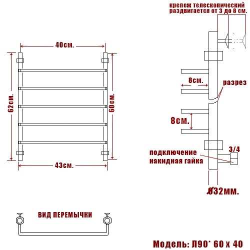 - Наружный диаметр основной трубы/перекладин: 32 / 18 мм.