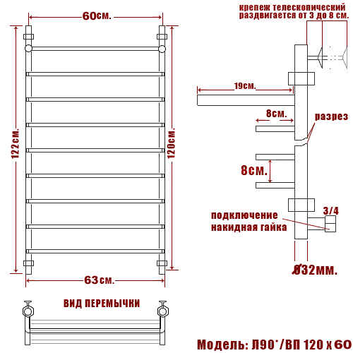 Используется для удобной просушки влажных вещей и полотенец, а также дополнительного обогрева помещения. Изготовлен из пищевой нержавеющей стали марки AISI 304 (Италия) с антикоррозийным покрытием, отличается стойкостью к высоким температурам, выдерживает значительные перепады давления.