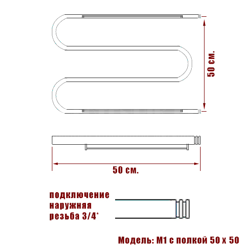 Водяной полотенцесушитель Ника Simple М1/СП 3/4 50x50 с полкой Хром