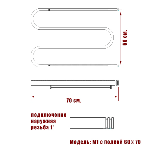 Водяной полотенцесушитель Ника Simple М1/СП 60x70 с полкой Хром
