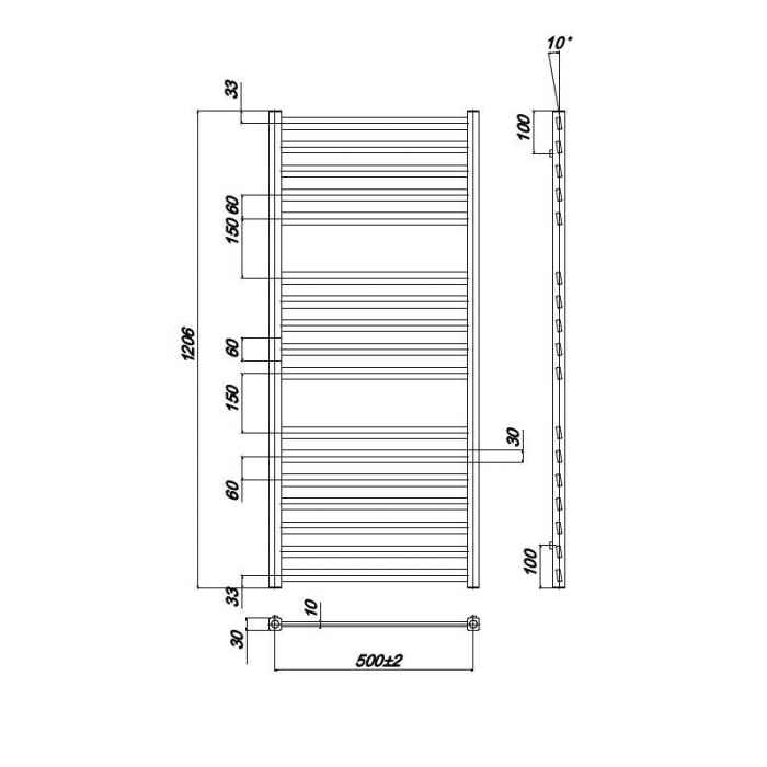 Водяной полотенцесушитель Ravak Degree 53х120 X04000083667 с нижним подключением, с 17 перекладинами изготовлен из нержавеющей стали.