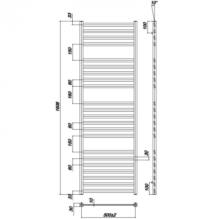 Водяной полотенцесушитель Ravak Degree 53х160 X04000083684 с нижним подключением, с 22 перекладинами изготовлен из нержавеющей стали.