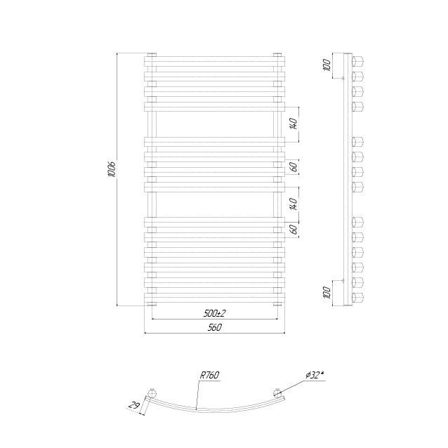 Водяной полотенцесушитель Ravak Elegance 56х100 X04000083676 с нижним подключением, с 14 перекладинами изготовлен из нержавеющей стали.
