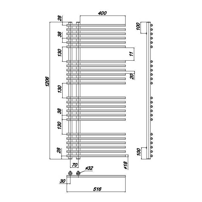 Водяной полотенцесушитель Ravak Style 52х120 X04000083673 с нижним подключением, с 24 перекладинами изготовлен из нержавеющей стали.