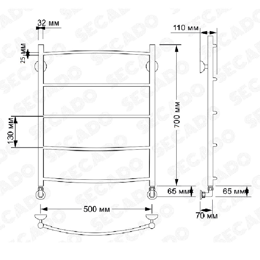 Водяной полотенцесушитель Secado Милан 1 плюс 50х70 Бронза