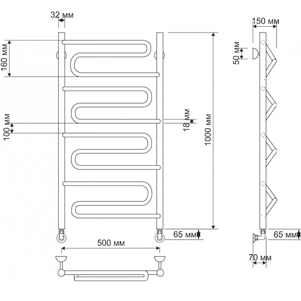 Водяной полотенцесушитель Secado Валенсия 50х100. Изготовлен из высококачественной бесшовной сантехнической латунной трубы с термостойким лаковым покрытием. Может использоваться во всех 3-х системах: в системе горячего водоснабжения, в системе центрального отопления, в закрытой системе отопления.Характеристики: