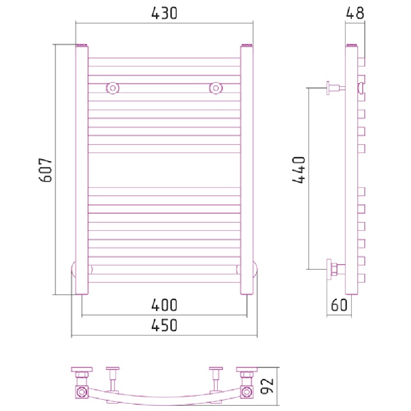 Группировка перекладин 6-6. Все элементы полотенцесушителя выполнены из нержавеющей стали. Радиатор с применением технологии покрытия 'ПолимерПротект'.