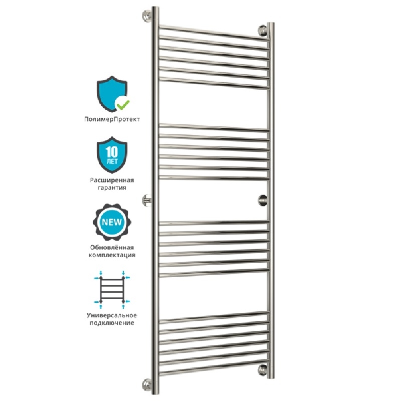 Группировка перекладин 6-6-6-6. Все элементы полотенцесушителя выполнены из нержавеющей стали. Выгнутый радиатор с применением технологии покрытия 'ПолимерПротект'.