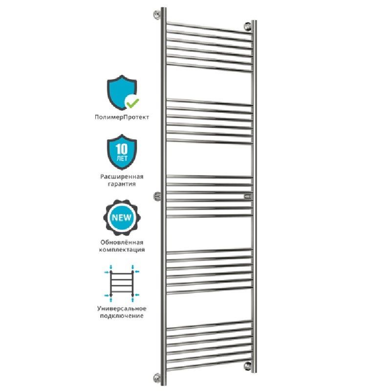 Группировка перекладин 6-6-6-6-6. Все элементы полотенцесушителя выполнены из нержавеющей стали. Выгнутый радиатор с применением технологии покрытия 'ПолимерПротект'.