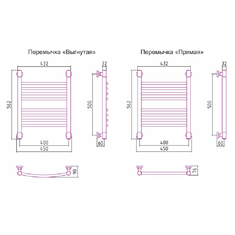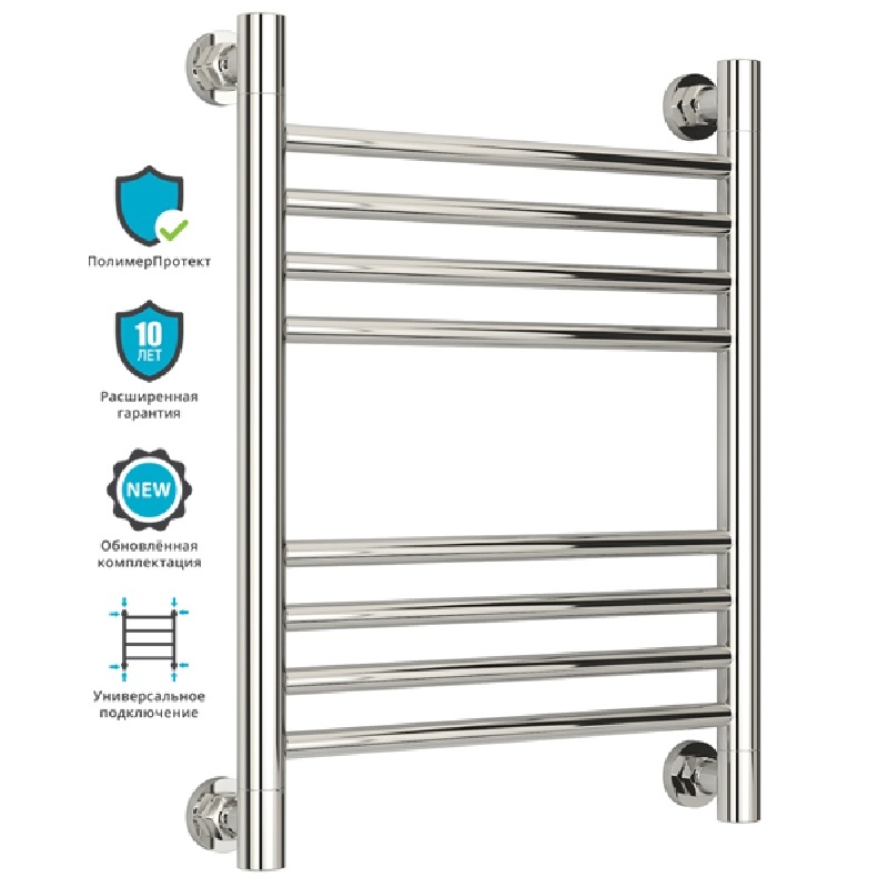 Группировка перекладин 4-4. Все элементы полотенцесушителя выполнены из нержавеющей стали. Выгнутый радиатор с применением технологии покрытия 'ПолимерПротект'.