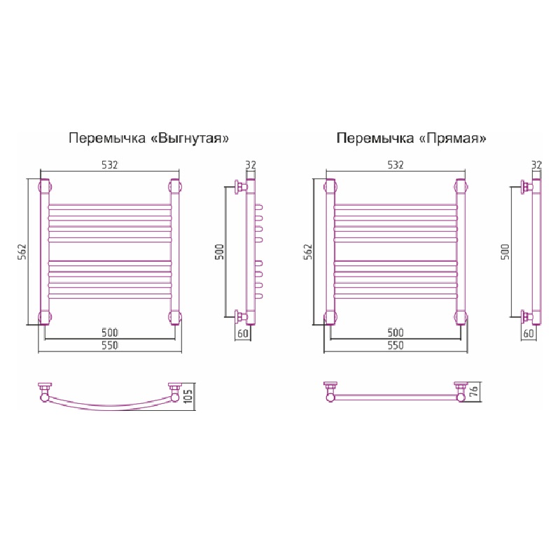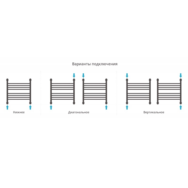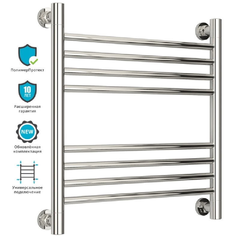Группировка перекладин 4-4. Все элементы полотенцесушителя выполнены из нержавеющей стали. Выгнутый радиатор с применением технологии покрытия 'ПолимерПротект'.
