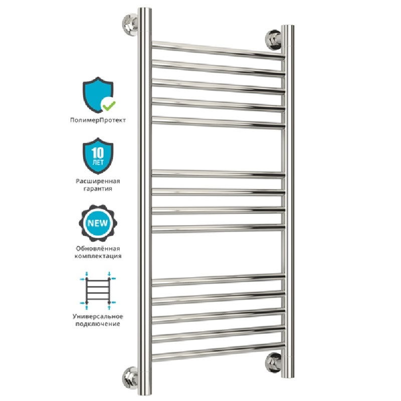 Группировка перекладин 5-4-5. Все элементы полотенцесушителя выполнены из нержавеющей стали. Выгнутый радиатор с применением технологии покрытия 'ПолимерПротект'.