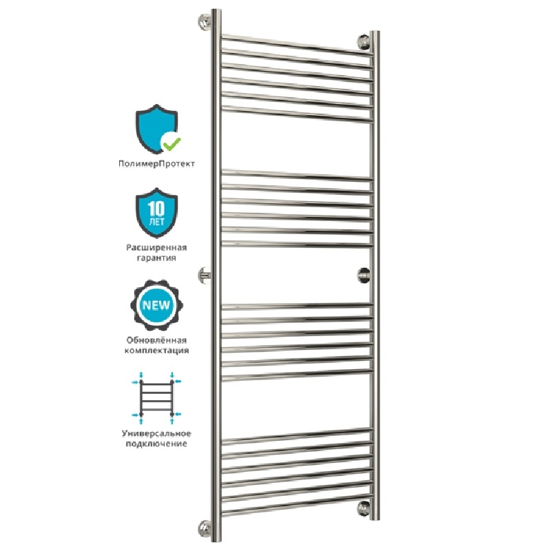 Группировка перекладин 6-6-6-6. Все элементы полотенцесушителя выполнены из нержавеющей стали. Прямой радиатор с применением технологии покрытия 'ПолимерПротект'.
