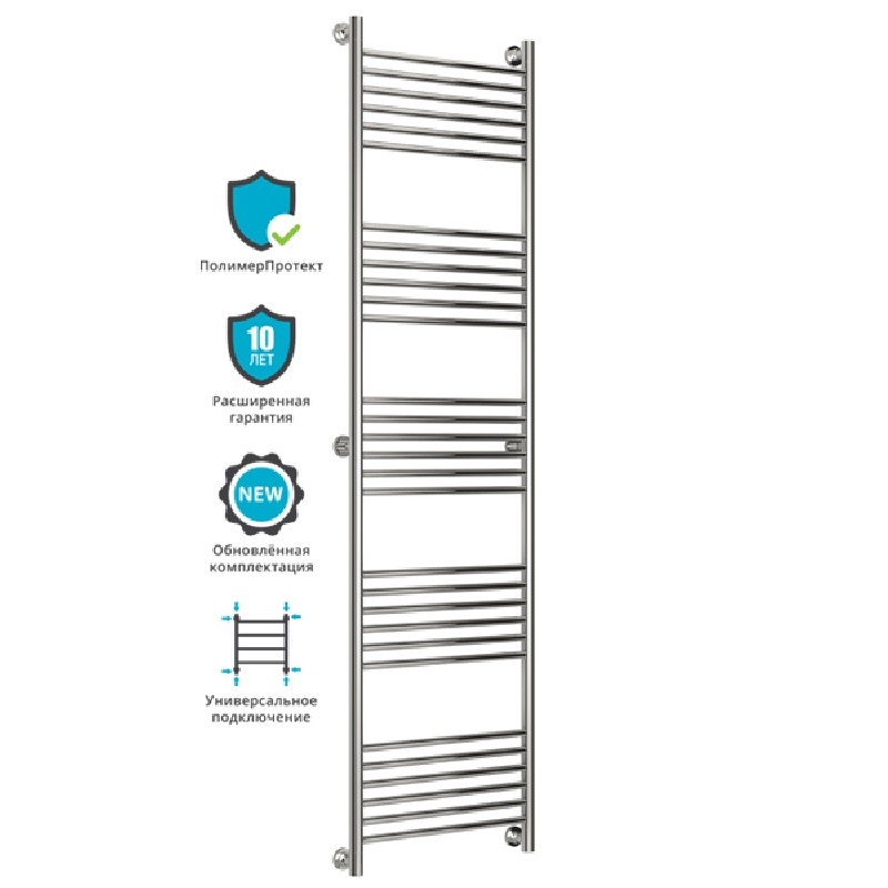 Группировка перекладин 6-6-6-6-6. Все элементы полотенцесушителя выполнены из нержавеющей стали. Прямой радиатор с применением технологии покрытия 'ПолимерПротект'.