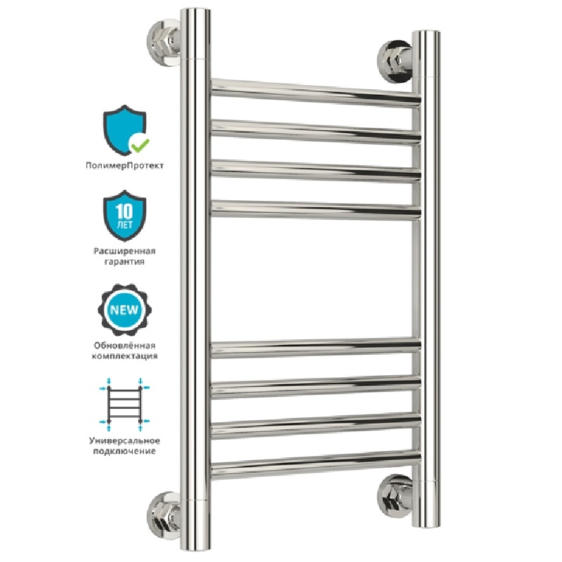 Группировка перекладин 4-4. Все элементы полотенцесушителя выполнены из нержавеющей стали. Прямой радиатор с применением технологии покрытия 'ПолимерПротект'.