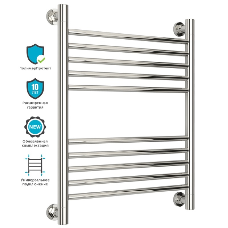 Группировка перекладин 5-5. Все элементы полотенцесушителя выполнены из нержавеющей стали. Прямой радиатор с применением технологии покрытия 'ПолимерПротект'.