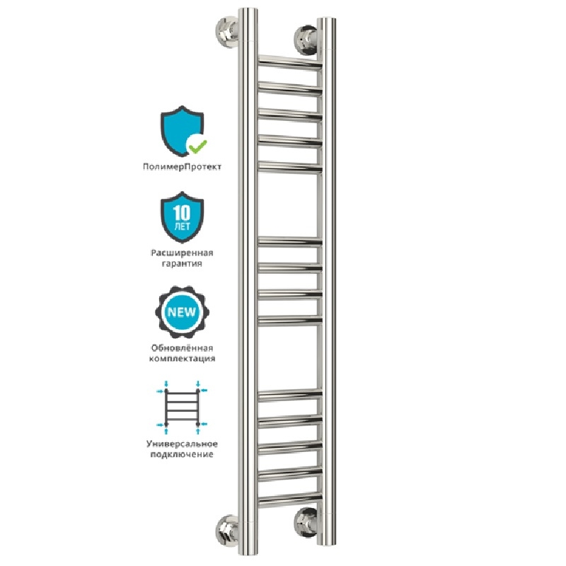 Группировка перекладин 5-4-5. Все элементы полотенцесушителя выполнены из нержавеющей стали. Прямой радиатор с применением технологии покрытия 'ПолимерПротект'.