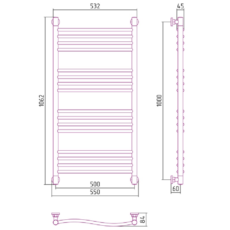 - Внешние габариты (высота х ширина х глубина) (мм): 1062х550х84,