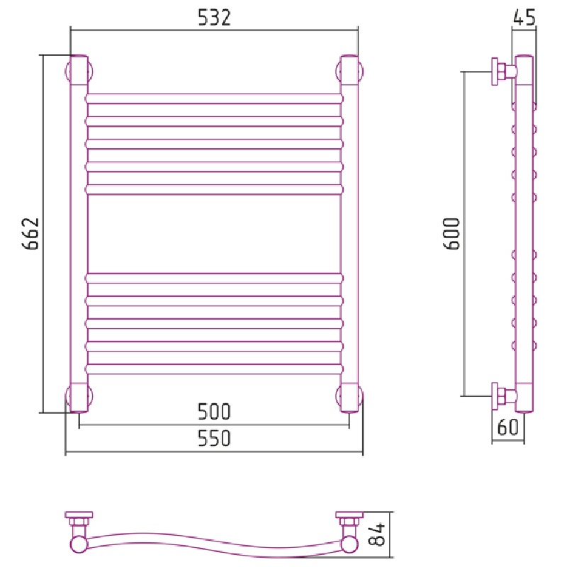 Группировка перекладин 5-5. Все элементы полотенцесушителя выполнены из нержавеющей стали. С применением технологии покрытия 'ПолимерПротект'.