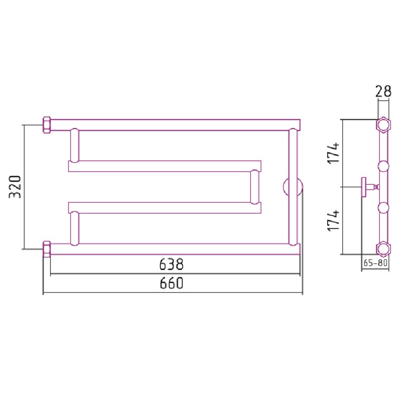 - Внешние габариты (высота х ширина х глубина) (мм): 348x660x65-80,