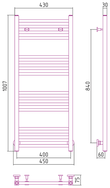 - Внешние габариты (высота х ширина х глубина) (мм): 1007x450x75,