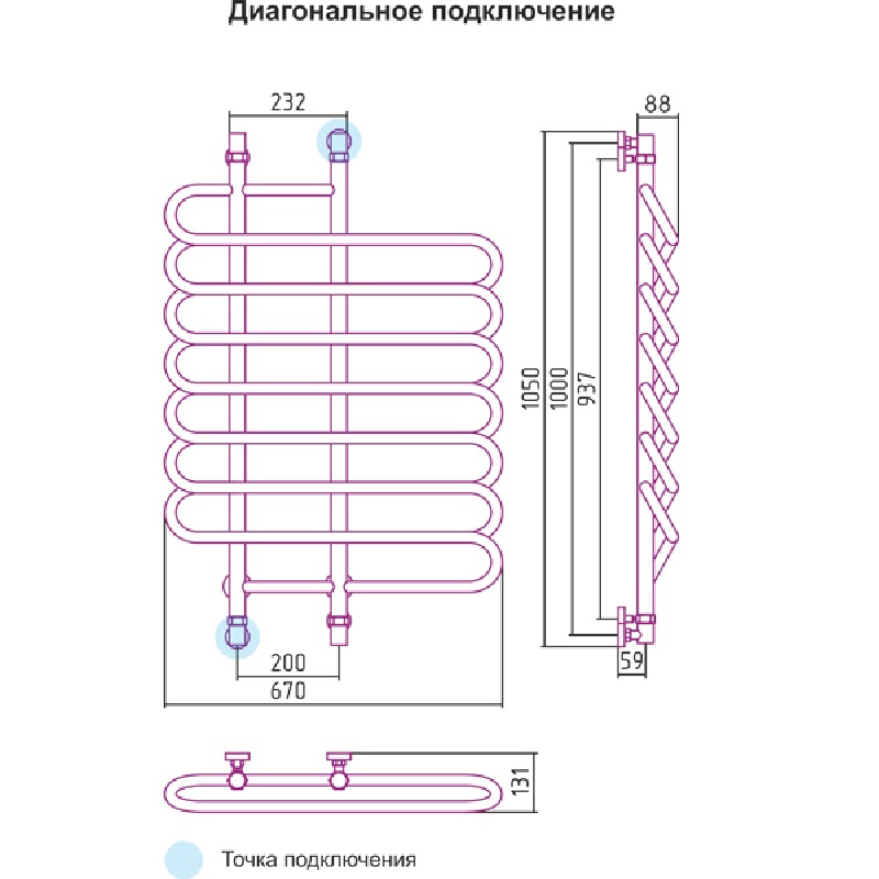 Технические характеристики:- Межосевое расстояние: нижнее подключение X (мм): 200, диагональное подключение Y (мм): 1000,