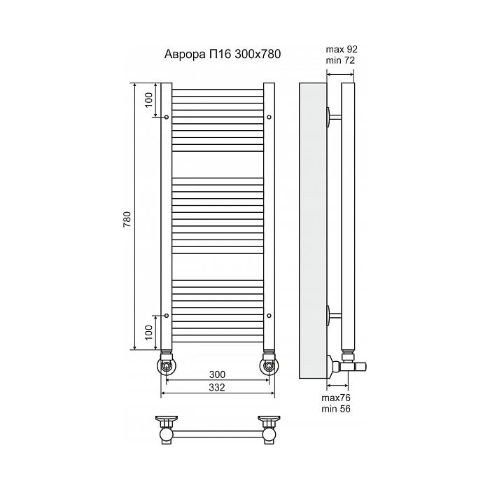 Водяной полотенцесушитель Terminus Аврора П16 300x780 4660059582207 Хром