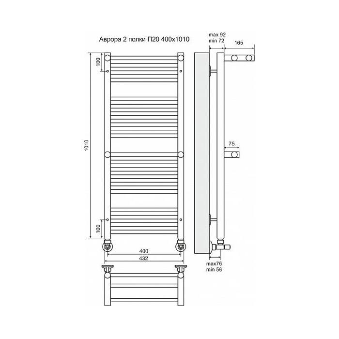 Водяной полотенцесушитель Terminus Аврора П20 400x1010 4660059582153 с полкой, с нижним подключением. Для производства полотенцесушителя используется только высококачественная нержавеющая сталь марки AISI 304L с высоким содержанием легирующих элементов, Ni и Cr, это позволяет изделиям сохранять стойкость к агрессивным коррозийным средам, что существенно продлевает срок их эксплуатации. Толщина стенки используемой трубы не менее 2 мм, это обеспечивает 10-ти кратный запас прочности, труба устойчива к резким перепадам давления в системе водоснабжения!