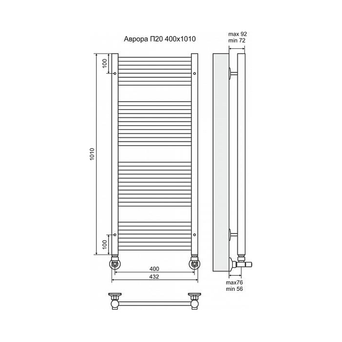 Водяной полотенцесушитель Terminus Аврора П20 400x1010 4660059582245 Хром