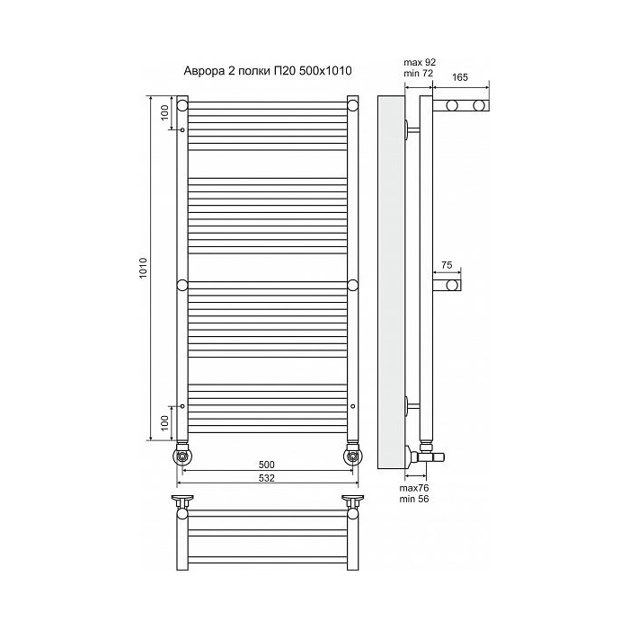 Водяной полотенцесушитель Terminus Аврора П20 500х1010 4660059582160 с полкой, с нижним подключением. Для производства полотенцесушителя используется только высококачественная нержавеющая сталь марки AISI 304L с высоким содержанием легирующих элементов, Ni и Cr, это позволяет изделиям сохранять стойкость к агрессивным коррозийным средам, что существенно продлевает срок их эксплуатации. Толщина стенки используемой трубы не менее 2 мм, это обеспечивает 10-ти кратный запас прочности, труба устойчива к резким перепадам давления в системе водоснабжения!