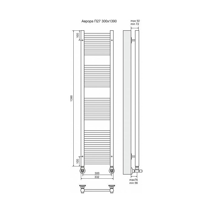 Водяной полотенцесушитель Terminus Аврора П27 300x1390 4660059582276 с нижним подключением. Для производства полотенцесушителя используется только высококачественная нержавеющая сталь марки AISI 304L с высоким содержанием легирующих элементов, Ni и Cr, это позволяет изделиям сохранять стойкость к агрессивным коррозийным средам, что существенно продлевает срок их эксплуатации. Толщина стенки используемой трубы не менее 2 мм, это обеспечивает 10-ти кратный запас прочности, труба устойчива к резким перепадам давления в системе водоснабжения!