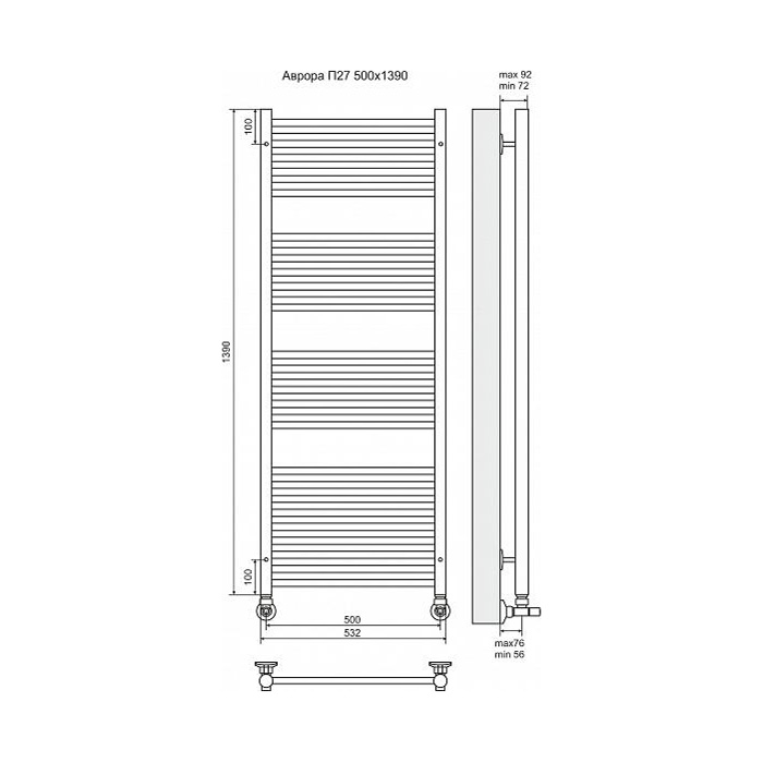 Водяной полотенцесушитель Terminus Аврора П27 500x1390 4620768886423 с нижним подключением. Для производства полотенцесушителя используется только высококачественная нержавеющая сталь марки AISI 304L с высоким содержанием легирующих элементов, Ni и Cr, это позволяет изделиям сохранять стойкость к агрессивным коррозийным средам, что существенно продлевает срок их эксплуатации. Толщина стенки используемой трубы не менее 2 мм, это обеспечивает 10-ти кратный запас прочности, труба устойчива к резким перепадам давления в системе водоснабжения!