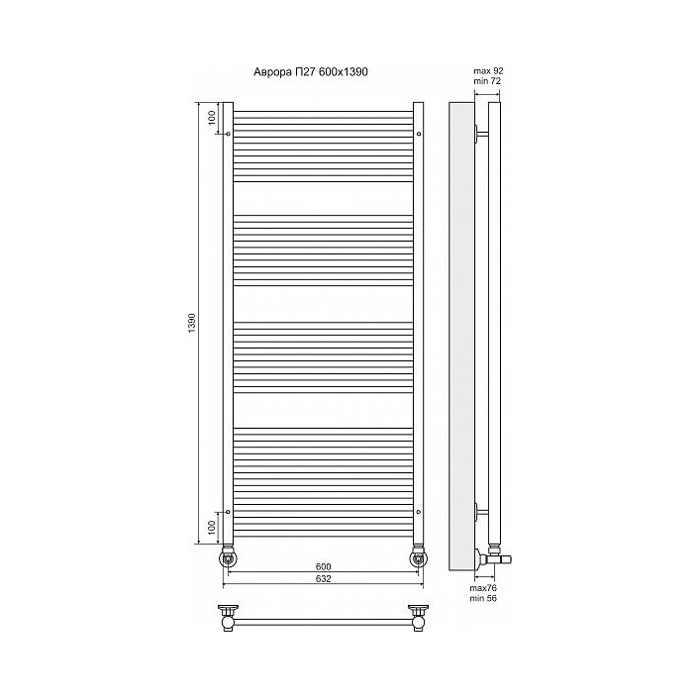Водяной полотенцесушитель Terminus Аврора П27 600x1390 4660059582290 с нижним подключением. Для производства полотенцесушителя используется только высококачественная нержавеющая сталь марки AISI 304L с высоким содержанием легирующих элементов, Ni и Cr, это позволяет изделиям сохранять стойкость к агрессивным коррозийным средам, что существенно продлевает срок их эксплуатации. Толщина стенки используемой трубы не менее 2 мм, это обеспечивает 10-ти кратный запас прочности, труба устойчива к резким перепадам давления в системе водоснабжения!