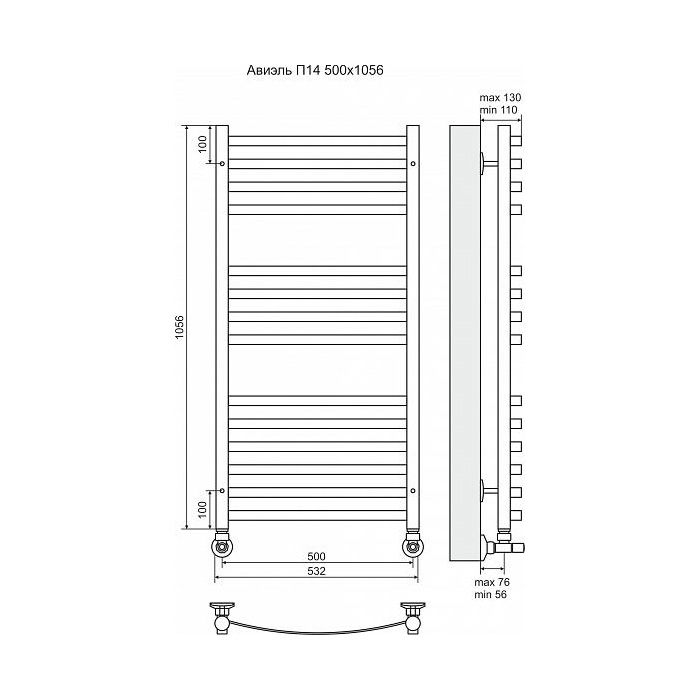 Водяной полотенцесушитель Terminus Авиэль П14 500х1056 4620768886393 Хром