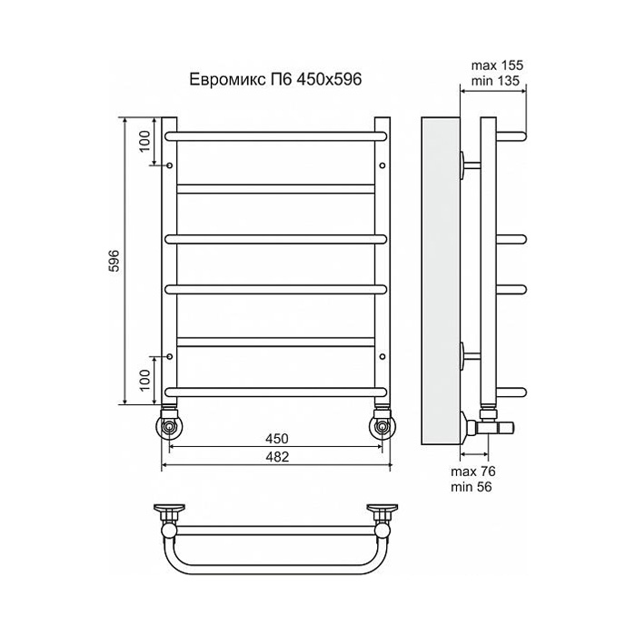 Водяной полотенцесушитель Terminus Евромикс П6 450x596 4670030723116 с нижним подключением. Для производства полотенцесушителя используется только высококачественная нержавеющая сталь марки AISI 304L с высоким содержанием легирующих элементов, Ni и Cr, это позволяет изделиям сохранять стойкость к агрессивным коррозийным средам, что существенно продлевает срок их эксплуатации. Толщина стенки используемой трубы не менее 2 мм, это обеспечивает 10-ти кратный запас прочности, труба устойчива к резким перепадам давления в системе водоснабжения!