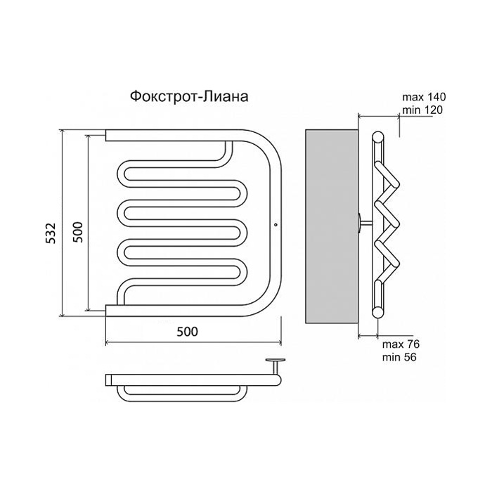 Водяной полотенцесушитель Terminus Фокстрот-Лиана 500x500 4620768880971 Хром
