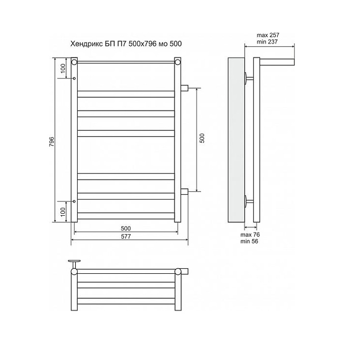 Водяной полотенцесушитель Terminus Хендрикс П7 500x796 4620768888823 с полкой, с боковым подключением. Для производства полотенцесушителя используется только высококачественная нержавеющая сталь марки AISI 304L с высоким содержанием легирующих элементов, Ni и Cr, это позволяет изделиям сохранять стойкость к агрессивным коррозийным средам, что существенно продлевает срок их эксплуатации. Толщина стенки используемой трубы не менее 2 мм, это обеспечивает 10-ти кратный запас прочности, труба устойчива к резким перепадам давления в системе водоснабжения!